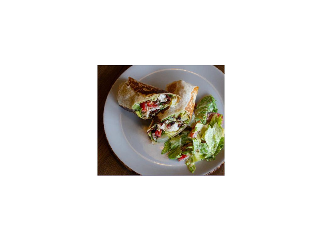 CAESAR WRAP v tortille zabalené plátky marinovaných grilovaných kuřecích prsíček společně s římským salátem, cherry rajčátky a caesar dresingem