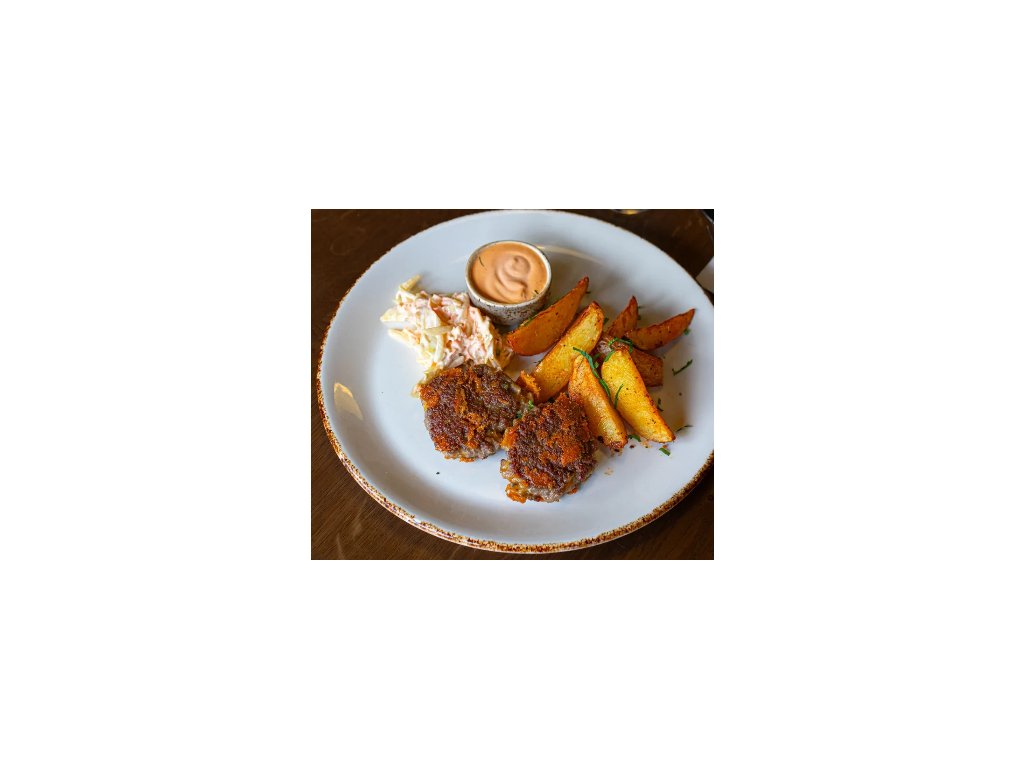 HOVĚZÍ BIFTEČKY s čedarem, americkými bramborami, salátem coleslaw a pikantní majonézou